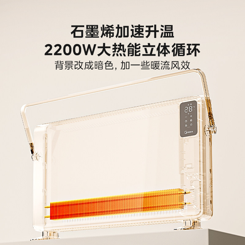 美 取暖器暖风机家用电暖器气石墨烯小太阳节能婴儿热风2025新款