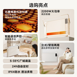 暖风机 大面积2025新款 美 踢脚线取暖器家用石墨烯电暖气语音冬季