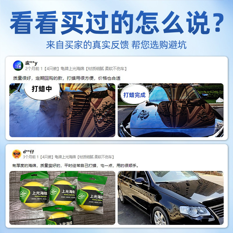 龟牌汽车打蜡海绵专用擦车神器手动抛光车用轮胎镀膜上光上蜡工具