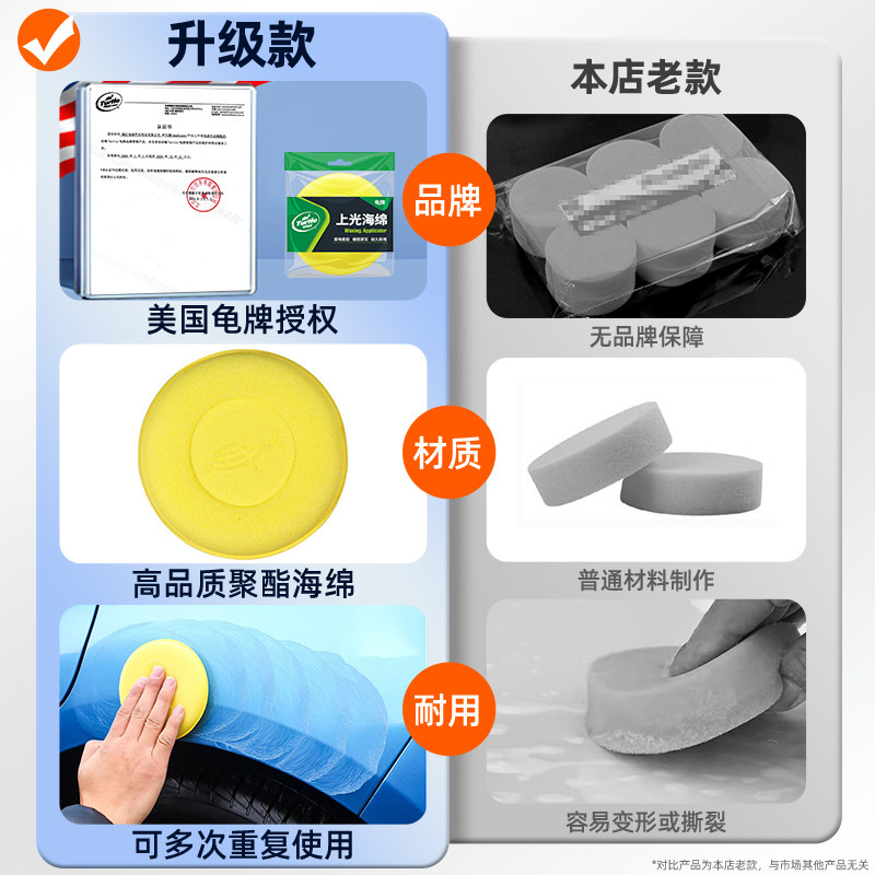 龟牌汽车打蜡专用海绵神器镀晶手动抛光工具上蜡圆形镀膜旗舰店