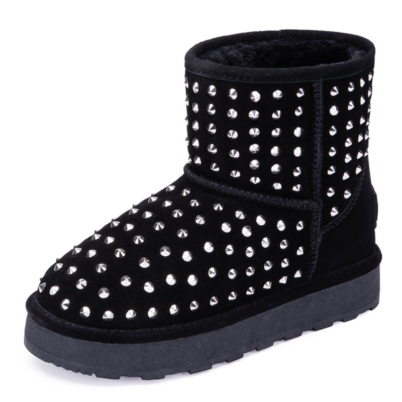 厚底防水加绒雪地靴短筒女7cm 4寸5寸真皮铆钉内增高 25年冬季 新款
