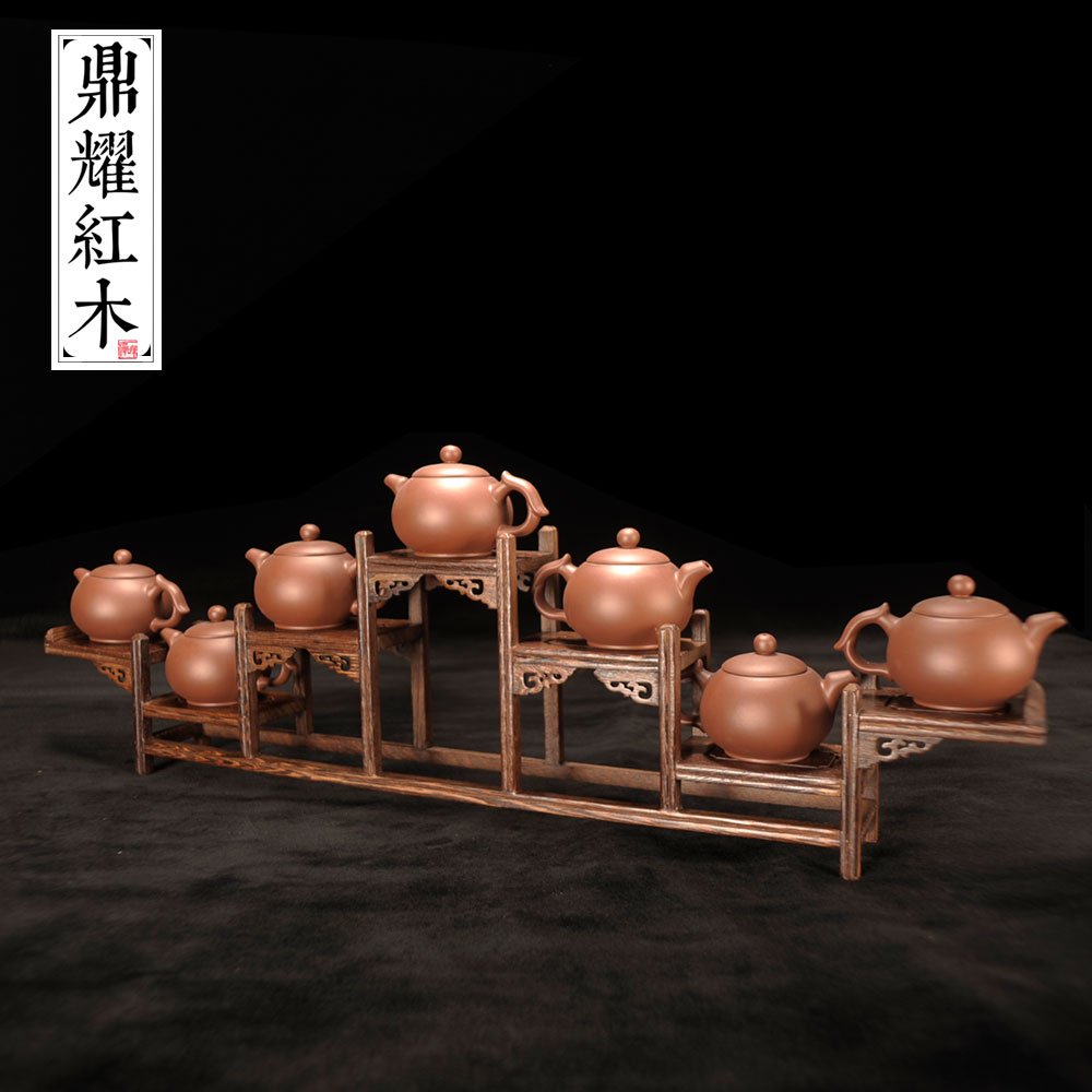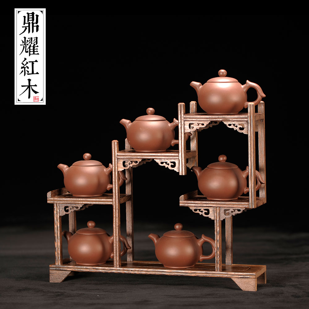 红木博古架小型多宝阁鸡翅木茶具架实木置物架紫砂茶壶底座展示架