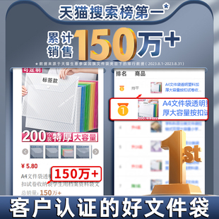 A4文件袋透明塑料加厚大容量按扣试卷收纳袋学生用档案资料袋文件夹包文具小学生商务办公用品定制LOGO公文
