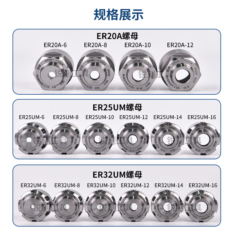 数控石材雕刻机主轴ER20ER25ER32UM高精度防尘防泥浆螺帽刀夹螺母