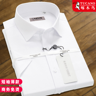 男长袖 半袖 商务正装 上班短袖 中年宽松纯白色全棉免烫抗皱职装 衬衫