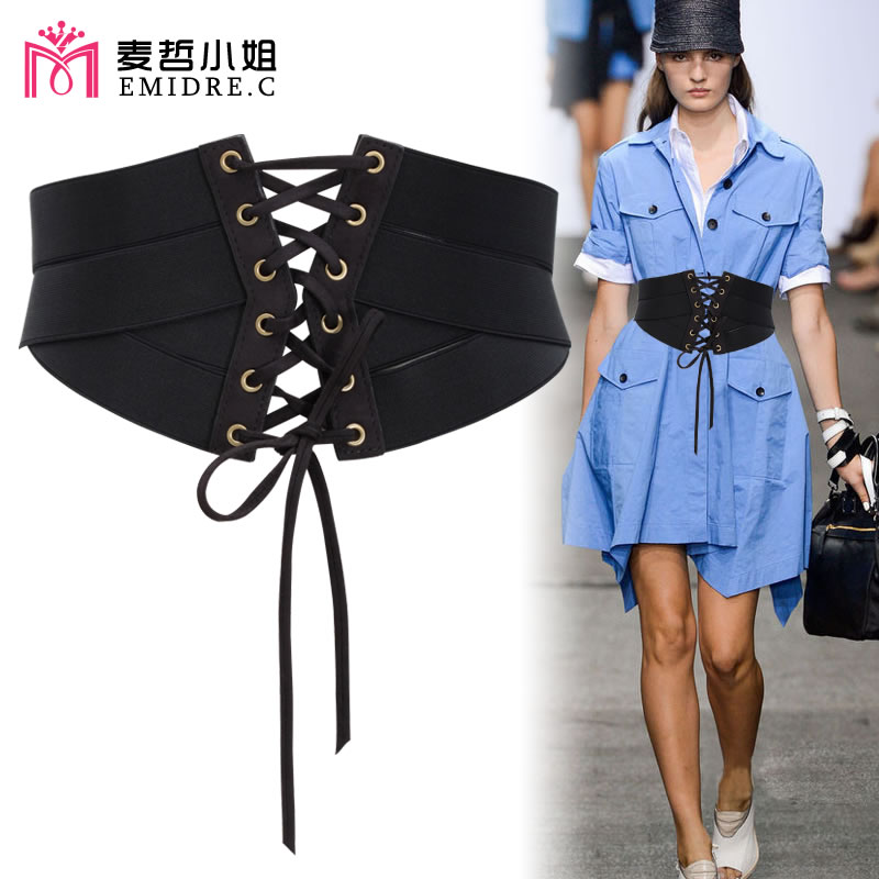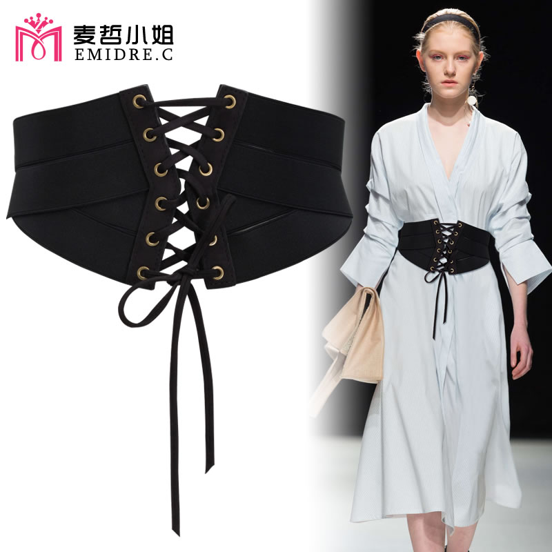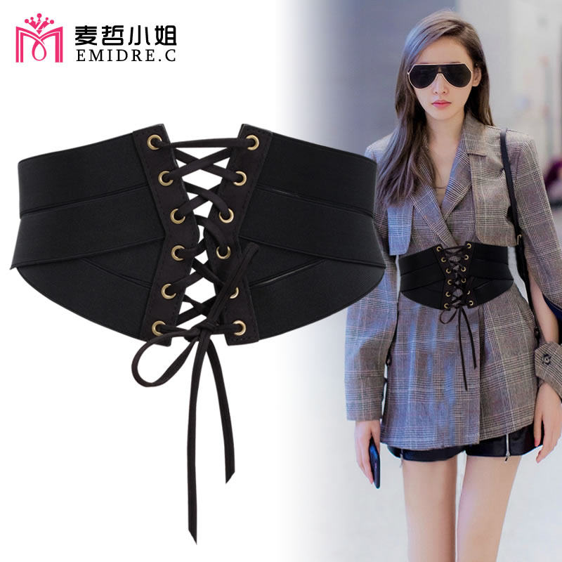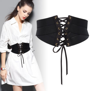 高级感腰封女束腰外穿宽腰带配西装 皮衣大衣复古哥特朋克黑色 衬衫