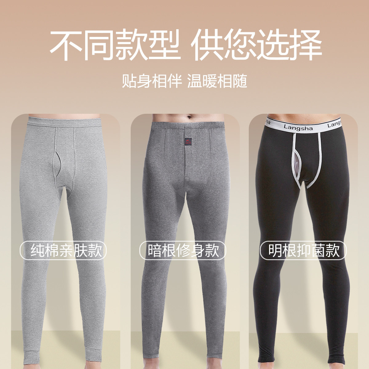 莫代尔紧身打底棉毛裤 衬裤 冬季 秋裤 保暖线裤 薄款 新款 浪莎男士 大码