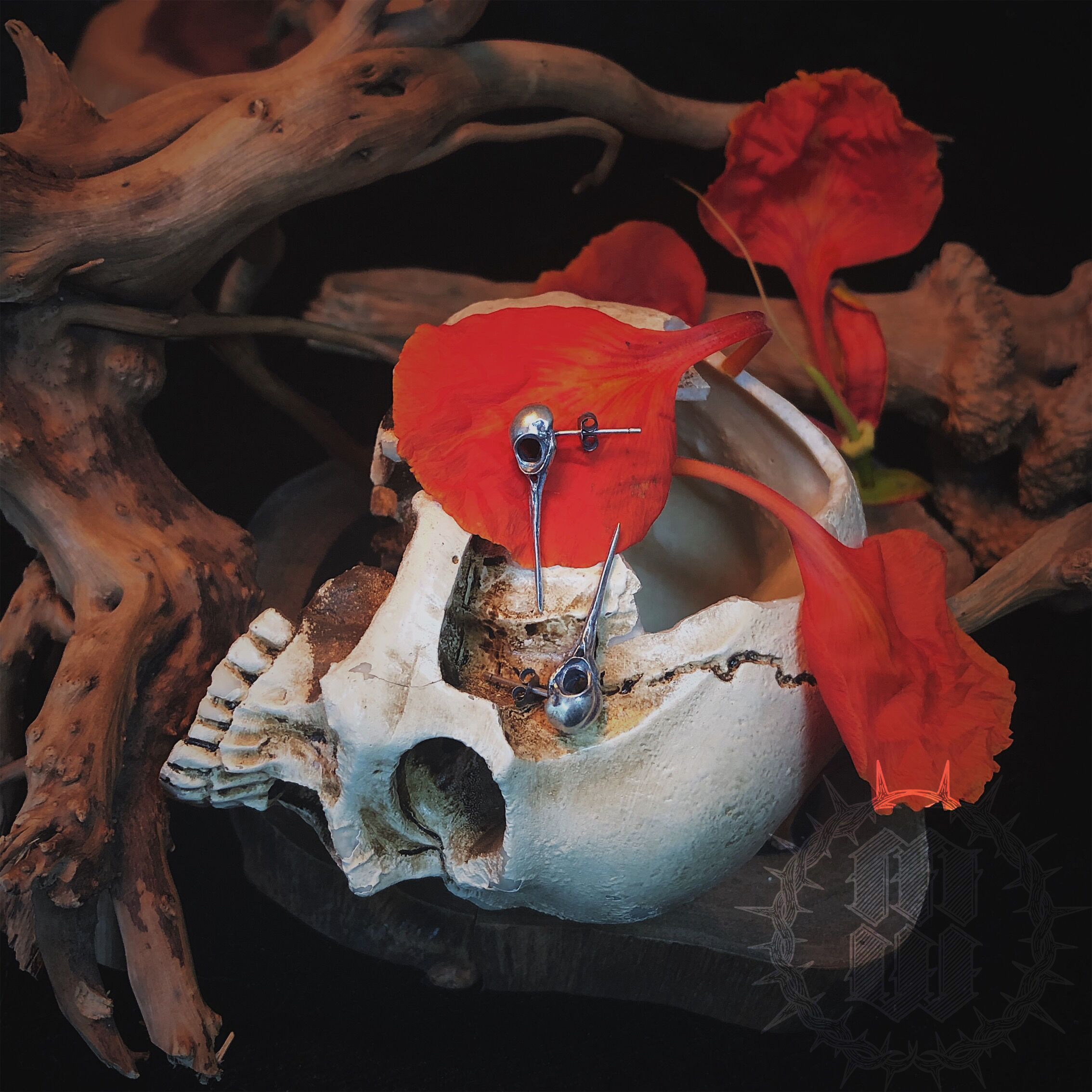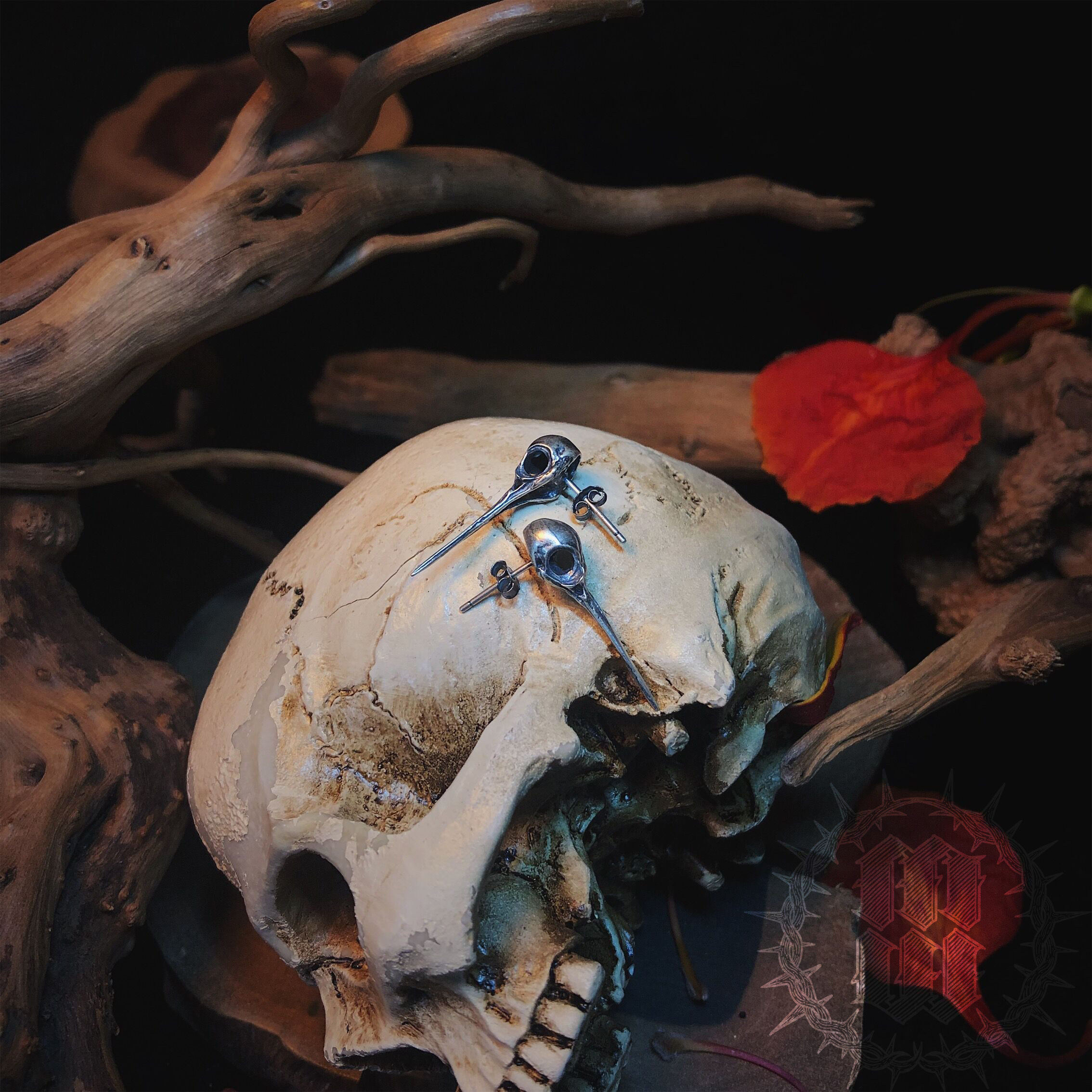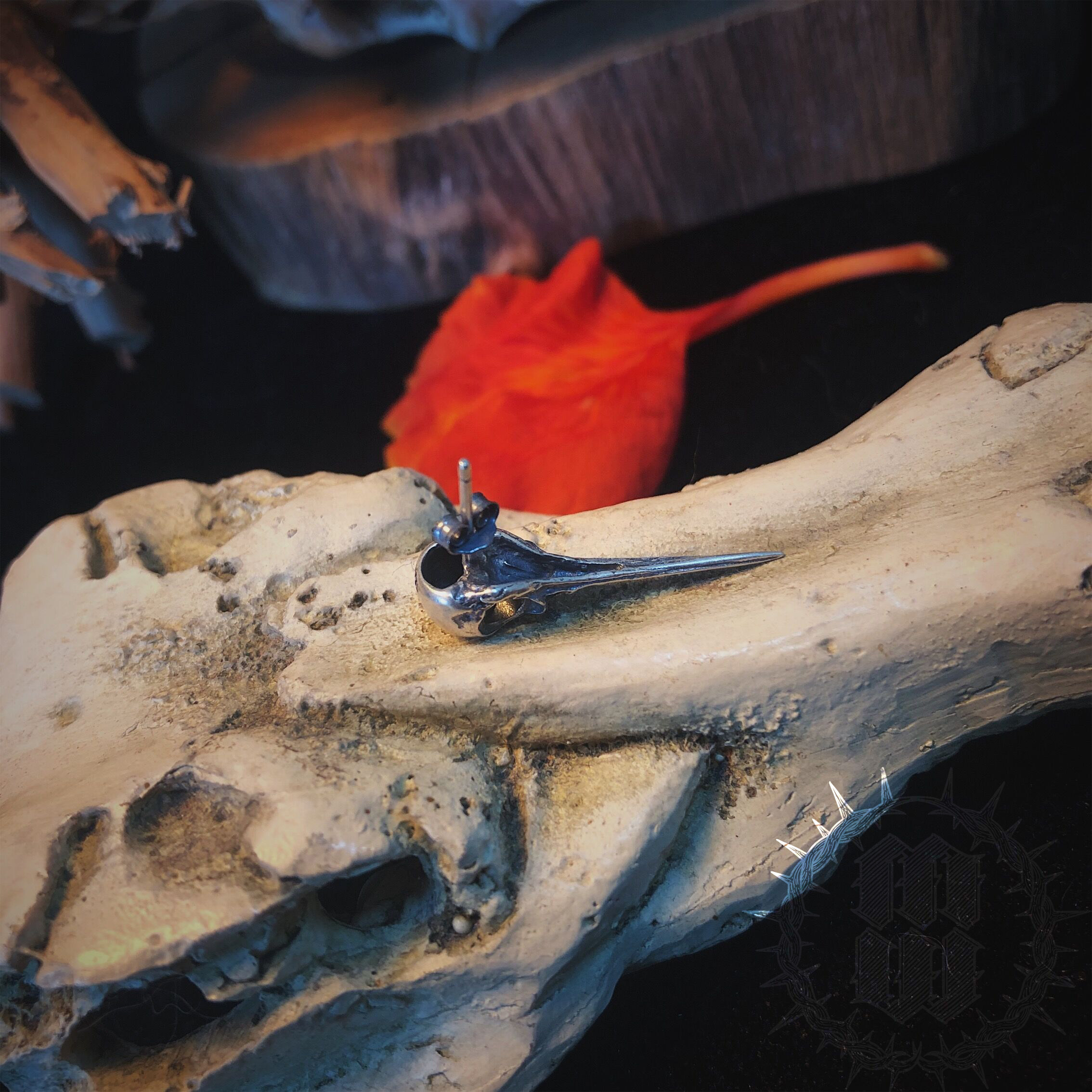 复古暗黑哥特做旧纯银鸟骨耳钉 瘟疫医生 Death 925银 Little