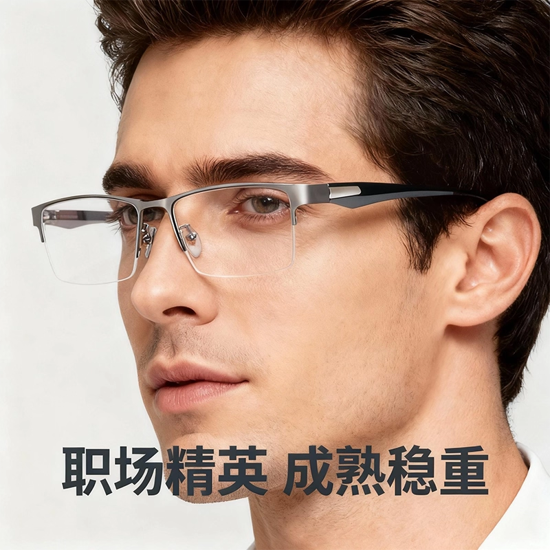 半框近视眼镜框男可配度数男士 散光变色丹阳镜架新 商务防蓝光男款