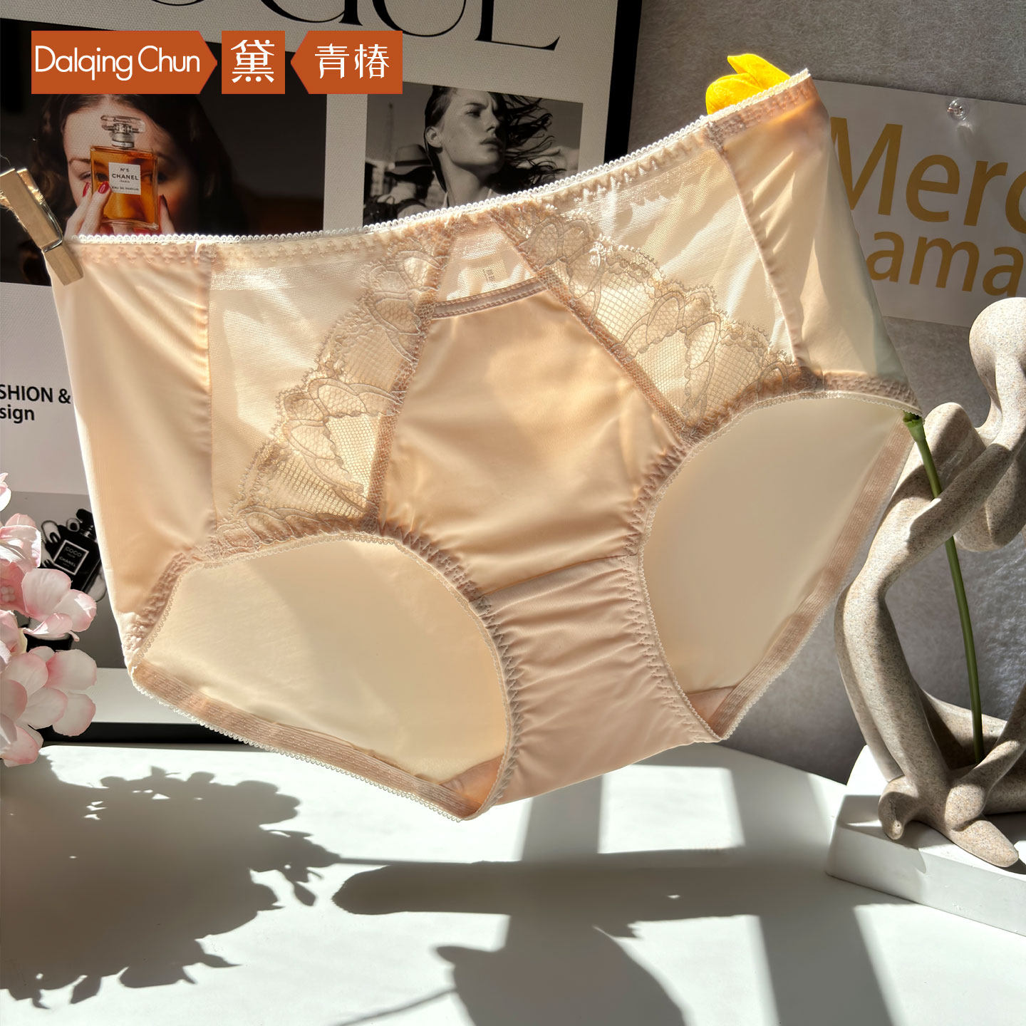 黛青椿极简轻奢风蕾丝牛奶丝中腰舒适内裤 衩单条 女速干品牌专柜裤