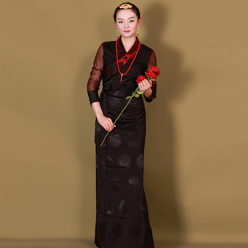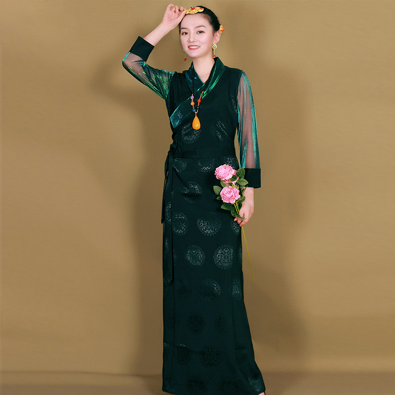 博拉高档锦缎藏袍女藏族服锅庄裙 女西藏服民族风藏服纱袖 夏季 藏装
