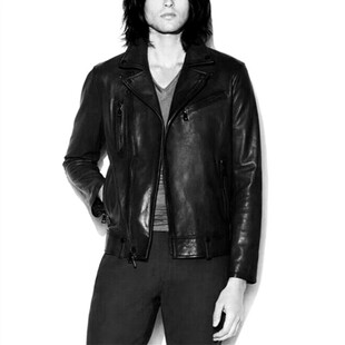 桑尼推荐 必入赔本抛植鞣头层绵羊皮翻领机车皮夹克男皮衣