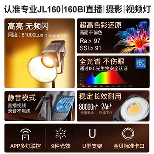 金贝EF150pro升级JL160W 160BI直播摄影补光灯主播专用绿幕直播间影视常亮灯led视频打光影棚人像深抛柔光灯