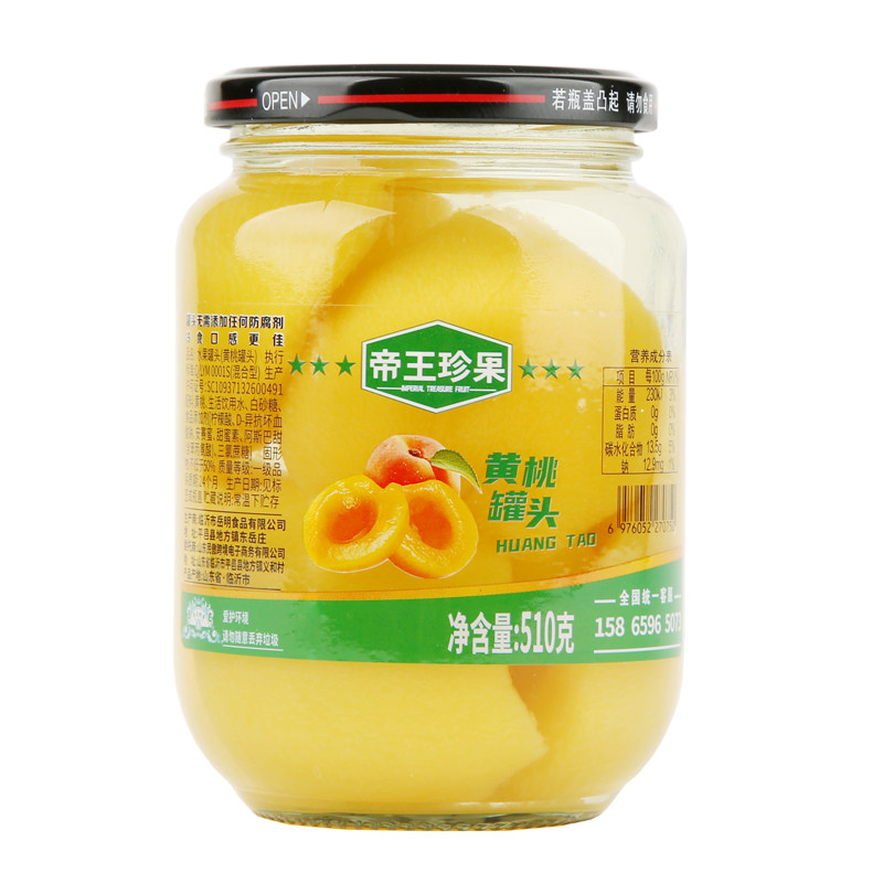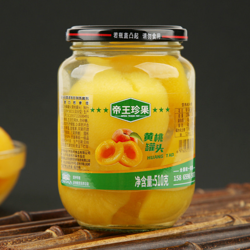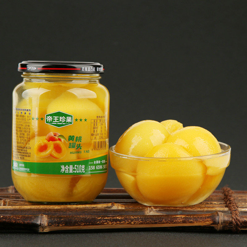 新鲜黄桃罐头510gX4罐糖水黄桃杂果雪梨大瓶菠萝罐头玻璃瓶装 黄桃