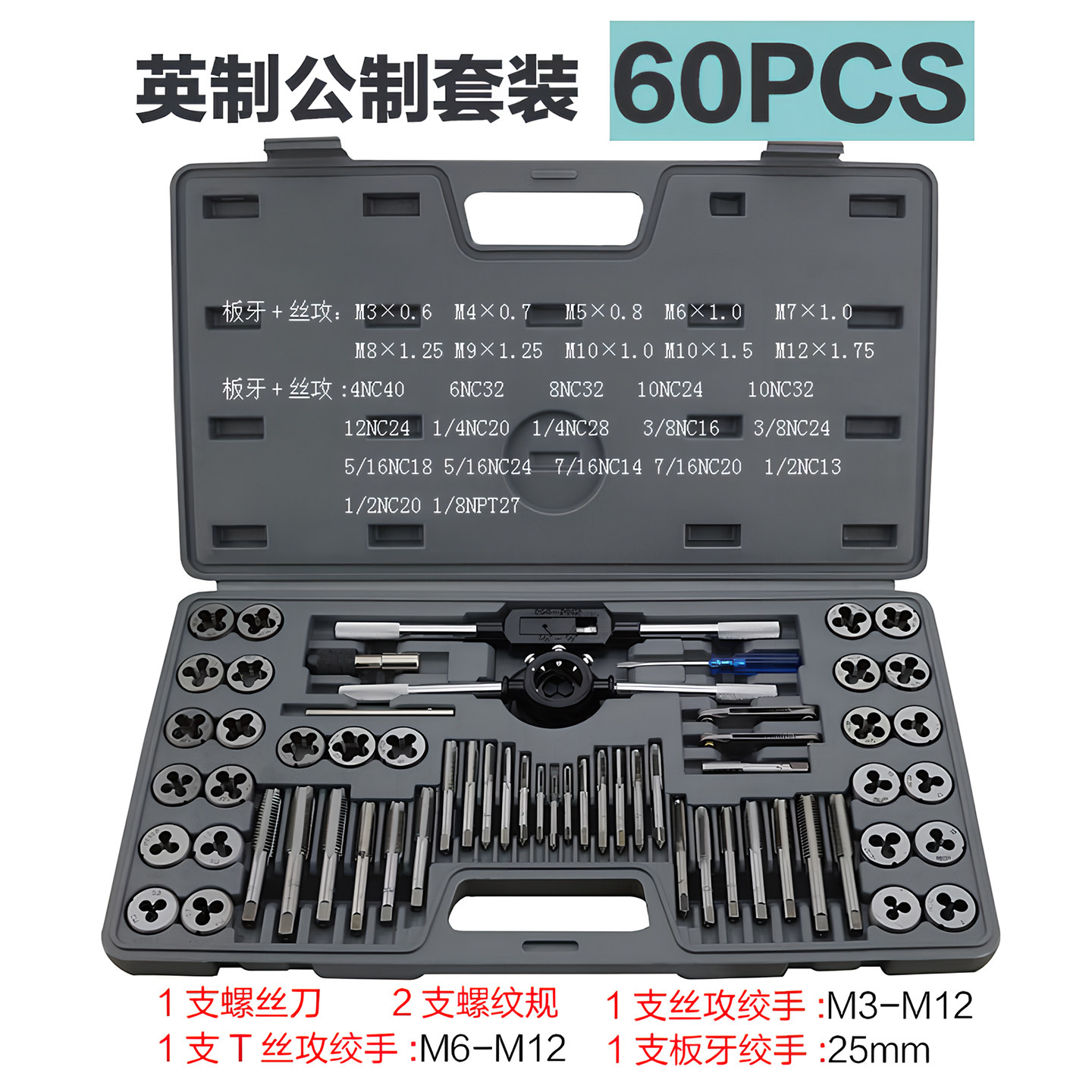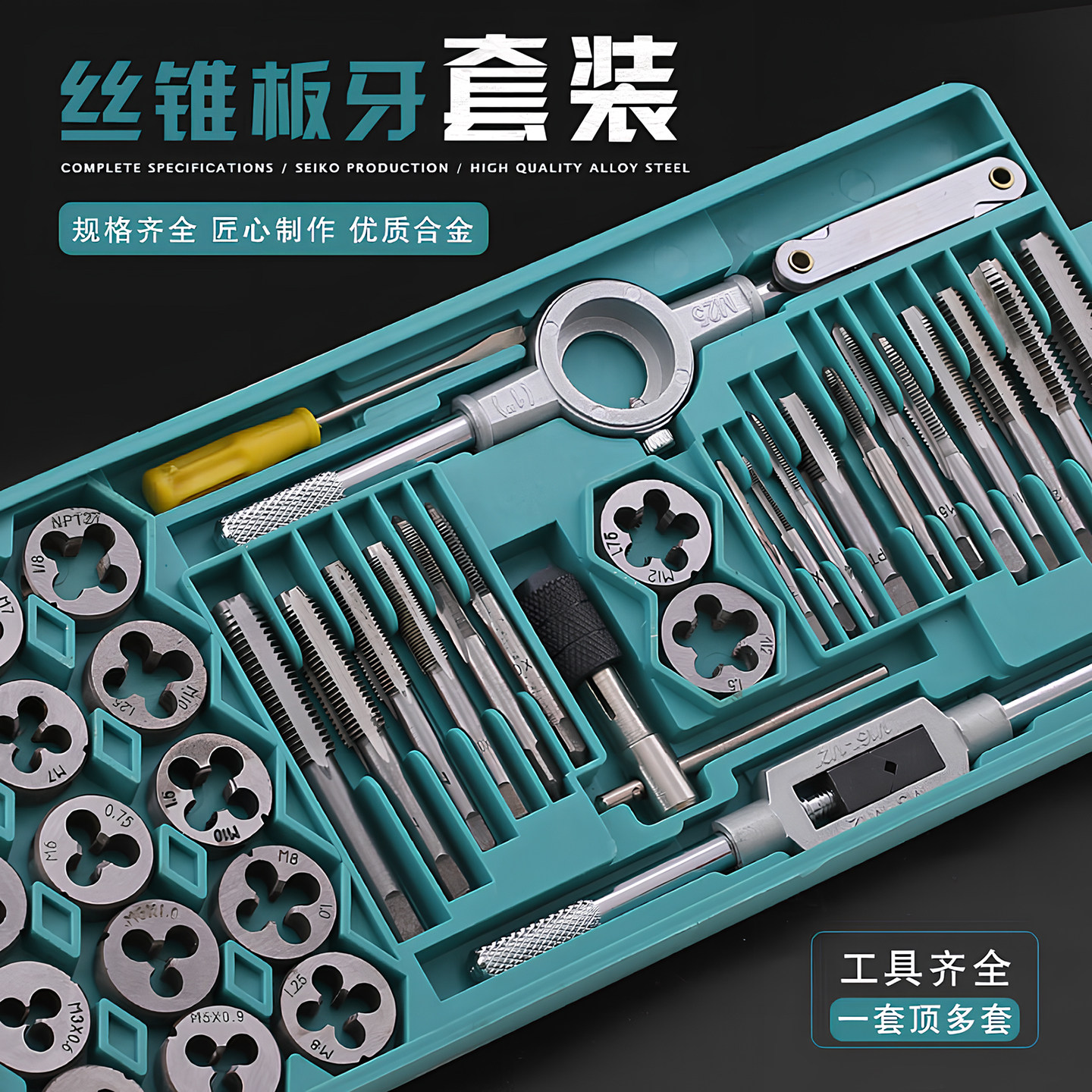 合金钢丝锥板牙工具手用丝攻扳手圆板牙绞手架公英制德国进口套装
