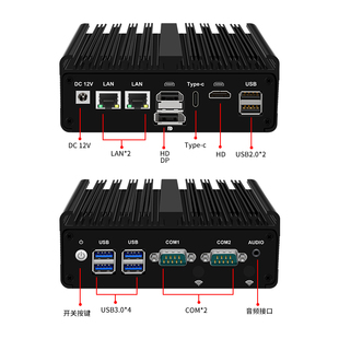 倍控n100四核迷你十代X86小主机j6412嵌入式 4G模块j6412 工控机无风扇微型minipc双网双串口工业HTPC电脑
