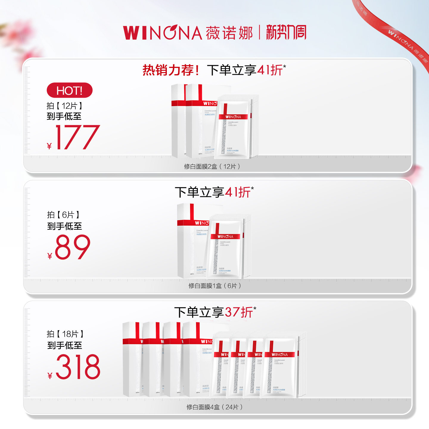 美白提亮淡斑修护保湿 薇诺娜修白面膜 褪红透白祛黄 钦选同款