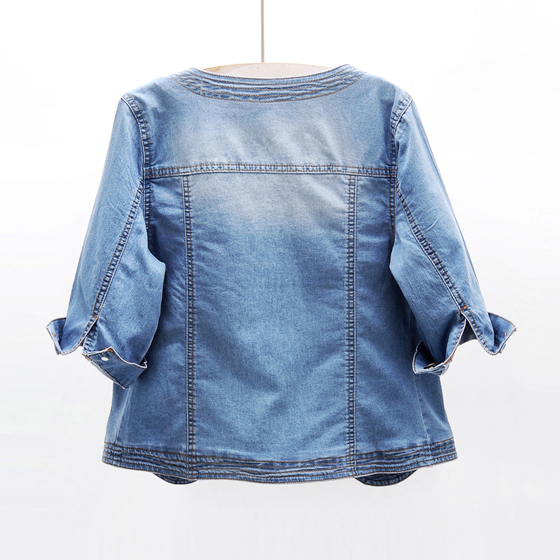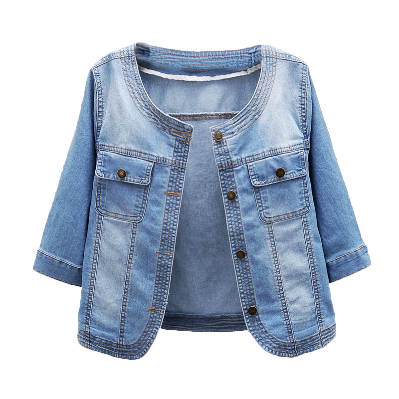 百搭弹力中袖 半袖 短款 薄款 圆领小披肩上衣潮 软牛仔外套女夏季 韩版