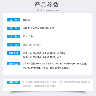 IX6880 851连供墨盒650 IX6700 IP8780打印机IP8700防回流供墨系统850 651墨盒 IX6860 墨之蓝适用佳能IX6780