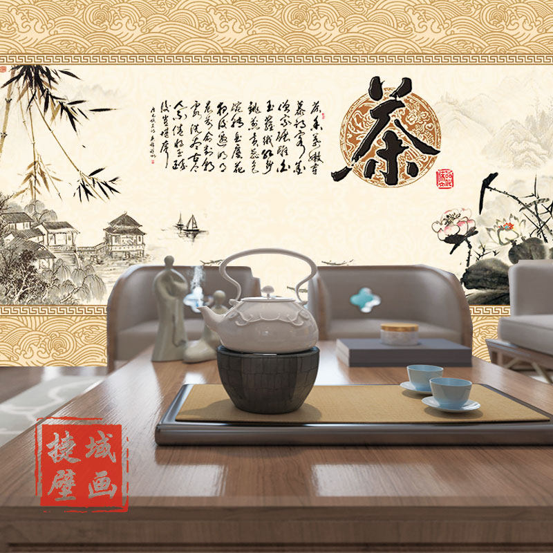 茶馆茶道文化墙纸背景茶室壁纸茶庄茶楼茶韵茶业茶行茶叶店壁画