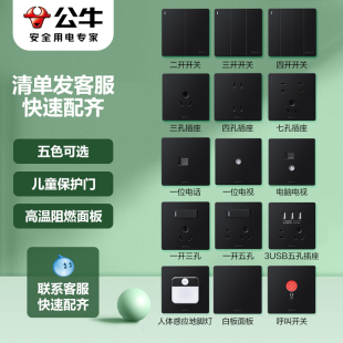 公牛插座旗舰店开关插座空调16A插座五孔插座10A面板暗装 G12黑