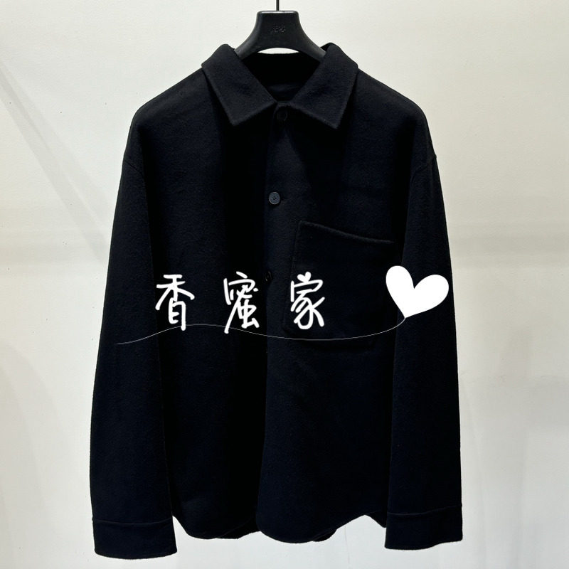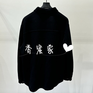 韩版 长款 呢子加厚风衣外套 2025春秋季 V37黑色高级感毛呢大衣男款