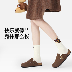 韩系中筒袜子女士纯色休闲长腰竖条纹堆堆吸汗防臭春秋款 美腿月子
