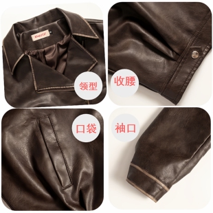 2025年新品 百塔显瘦机车皮短 复古PU皮衣外套女春秋韩系小个子时尚