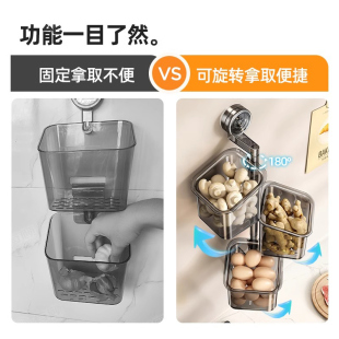 浴室旋转三角置物架吸壁塑料收纳整理架厨房卫浴防尘储物柜墙角架