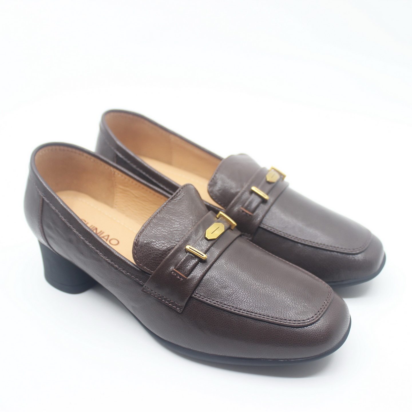 P58G588K 富贵鸟女鞋 舒适粗跟羊皮真皮女单鞋 时尚 2025秋新款