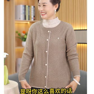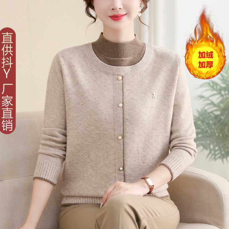 中老年人女加绒加厚保暖上衣套装 妈妈秋冬装 毛衣洋气一体绒打底衫