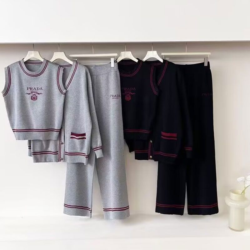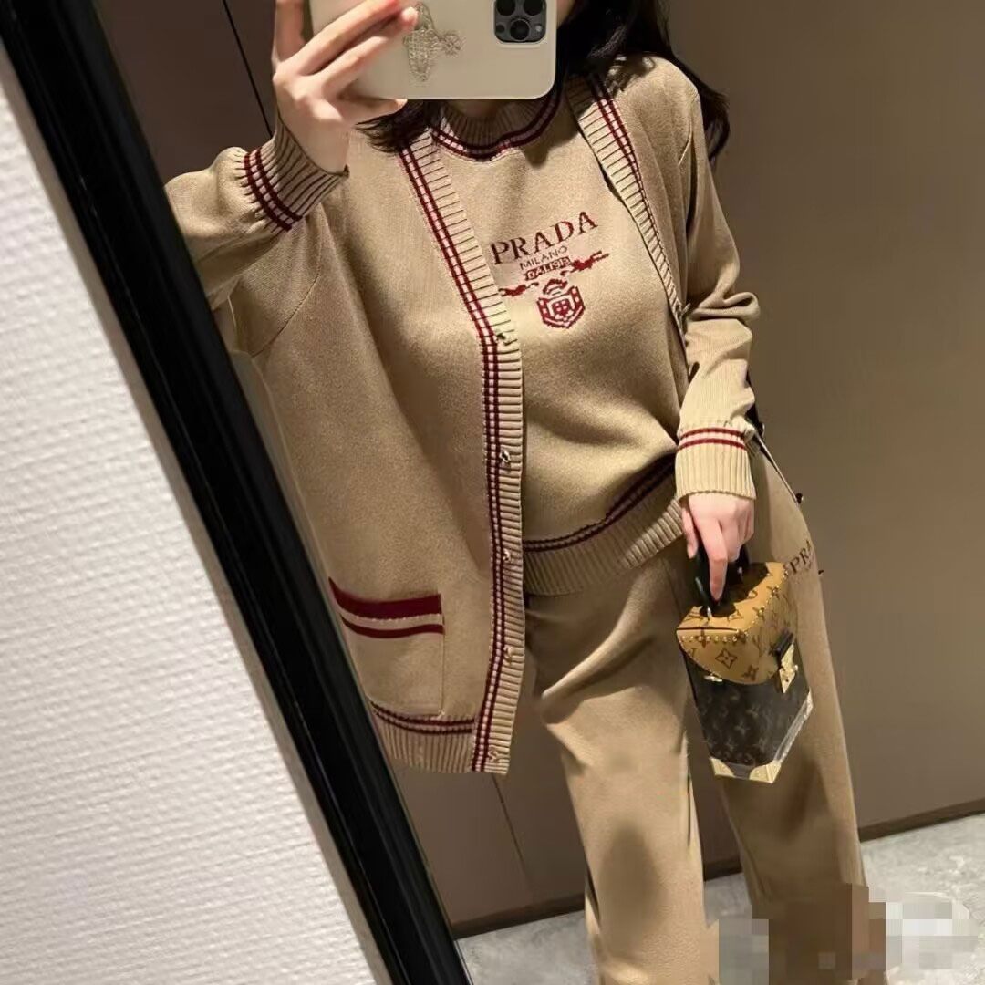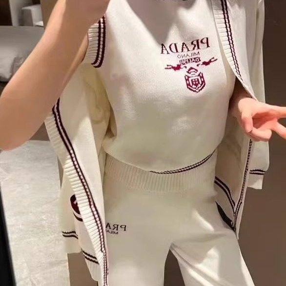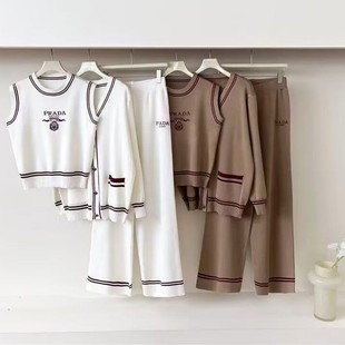 女字母无袖 休闲阔腿裤 背心 外套 三件套 针织开衫 欧美风2025年新款