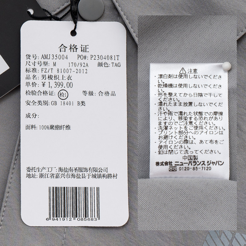 Balance 夹克外套上衣短袖 日系衬衫 T恤男AMJ35004 Grey男款 New