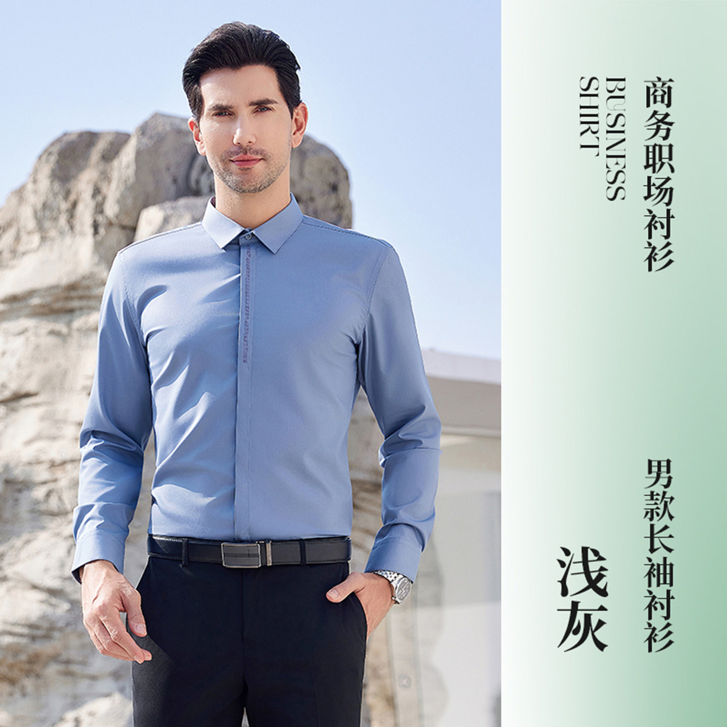 男士 衬衫 免烫订婚白色衬衣男 轻熟男商务冰丝长袖 高科技无缝免烫