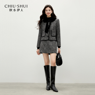 打底上衣三件套装 甜美轻奢温柔风高领针织马甲毛衣女 格纹半身裙