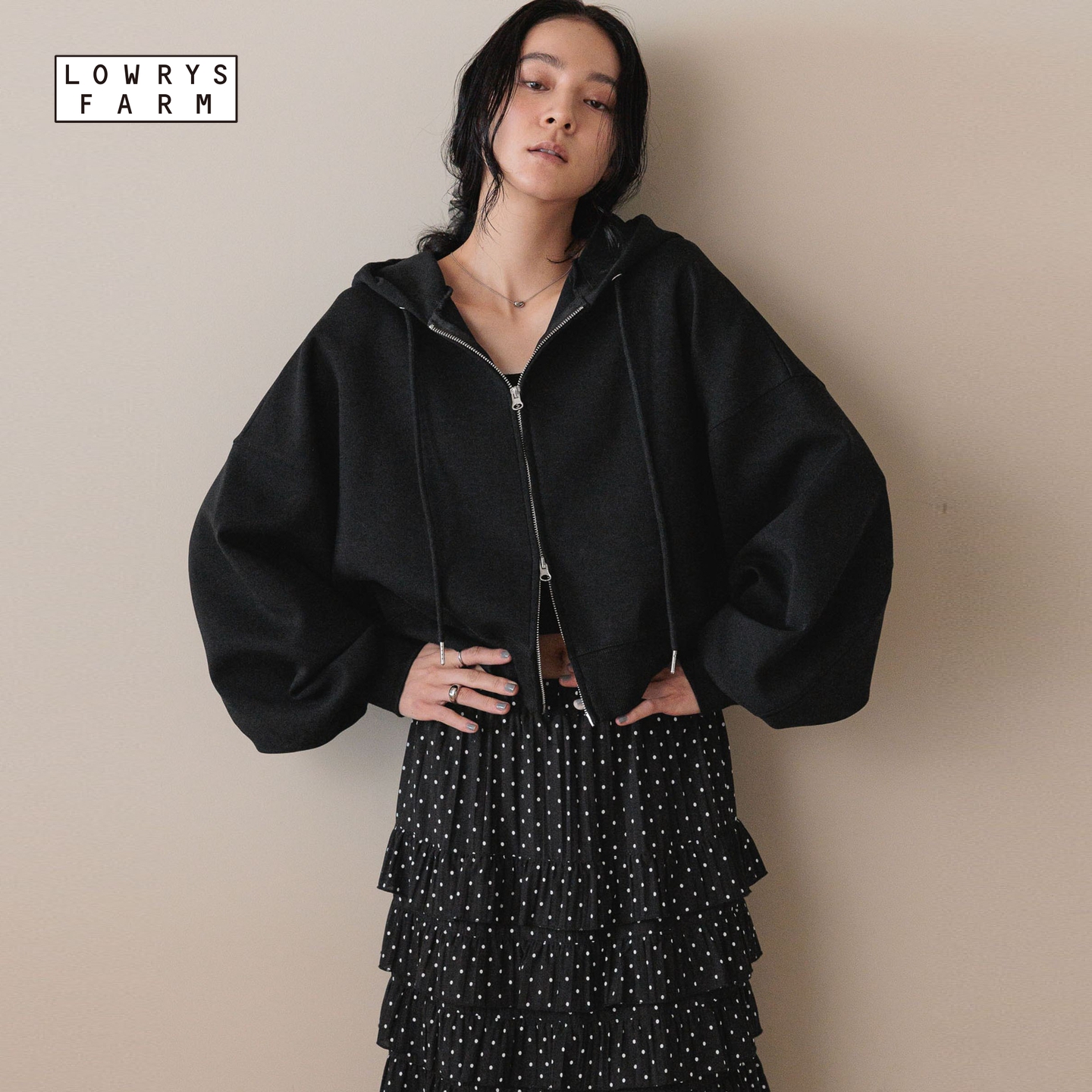 简约宽松拉链连帽卫衣588894 新款 LOWRYS FARM外套女2025秋季