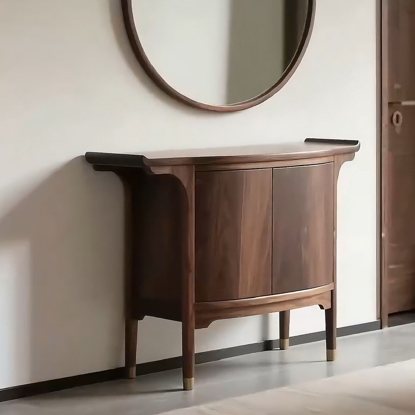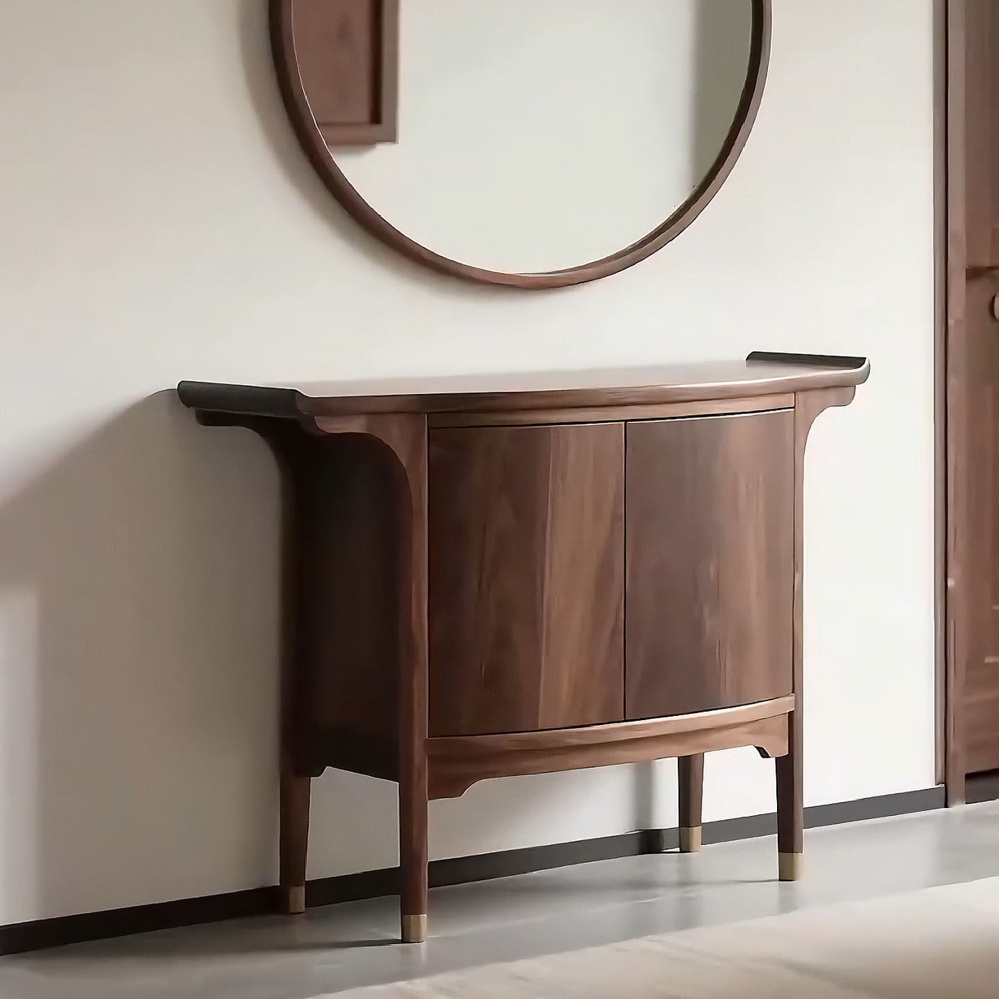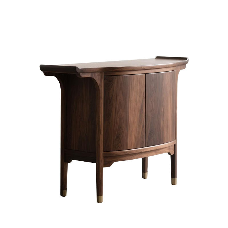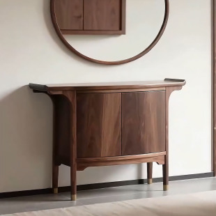 新中式 美学翘头玄关桌客厅实木储物收纳柜 北美黑胡桃木玄关柜宋式