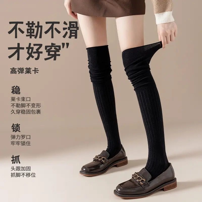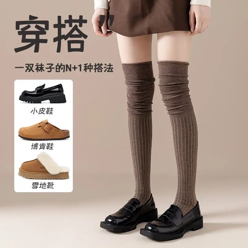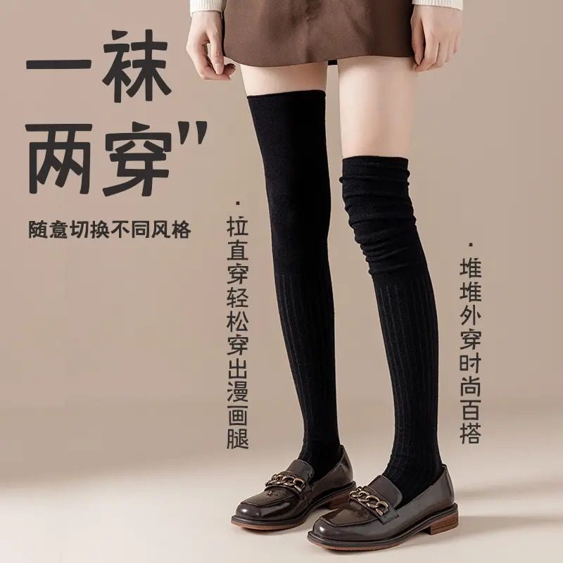 堆堆过膝袜女春秋款 棉靴子叠穿显瘦大腿护膝盖高筒长袜秋冬jk