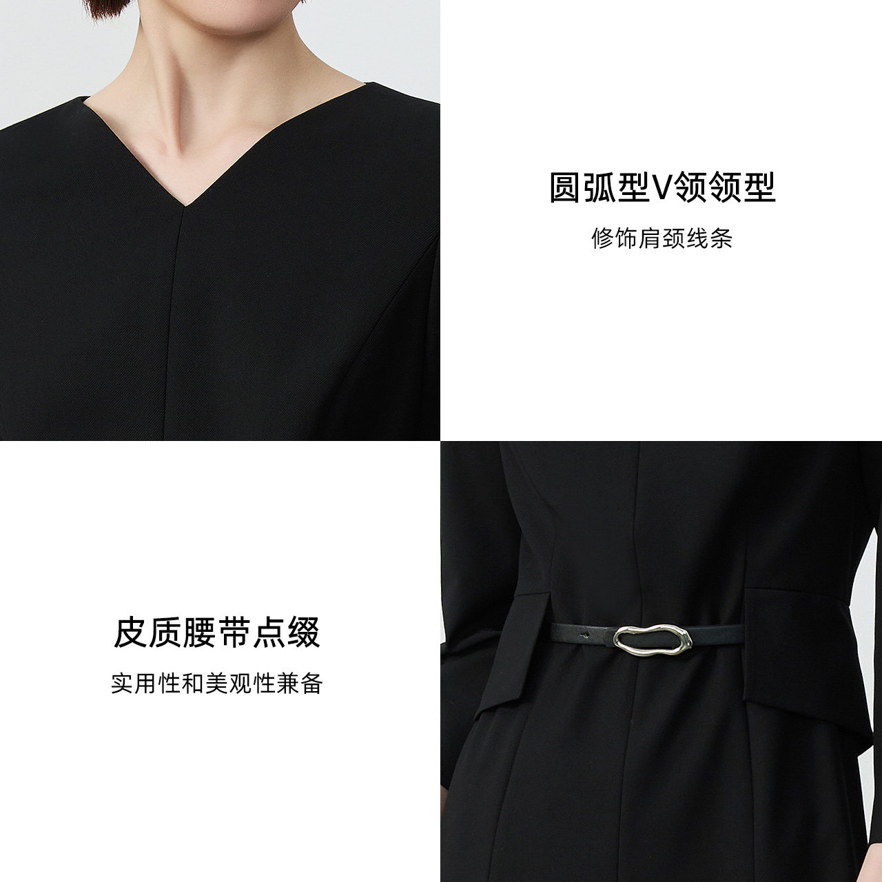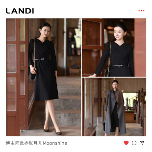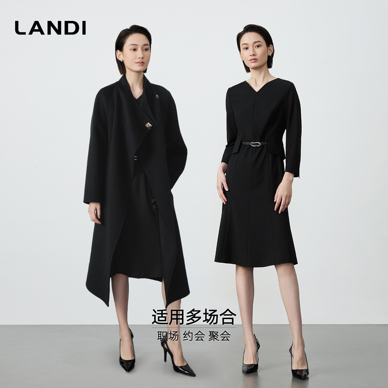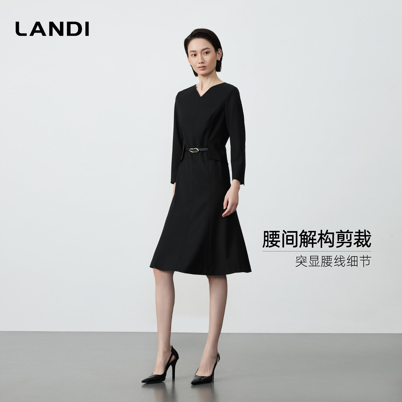 解构剪裁收腰连衣裙女秋冬新品 LANDI蓝地月夜黑V领长袖 优雅通勤