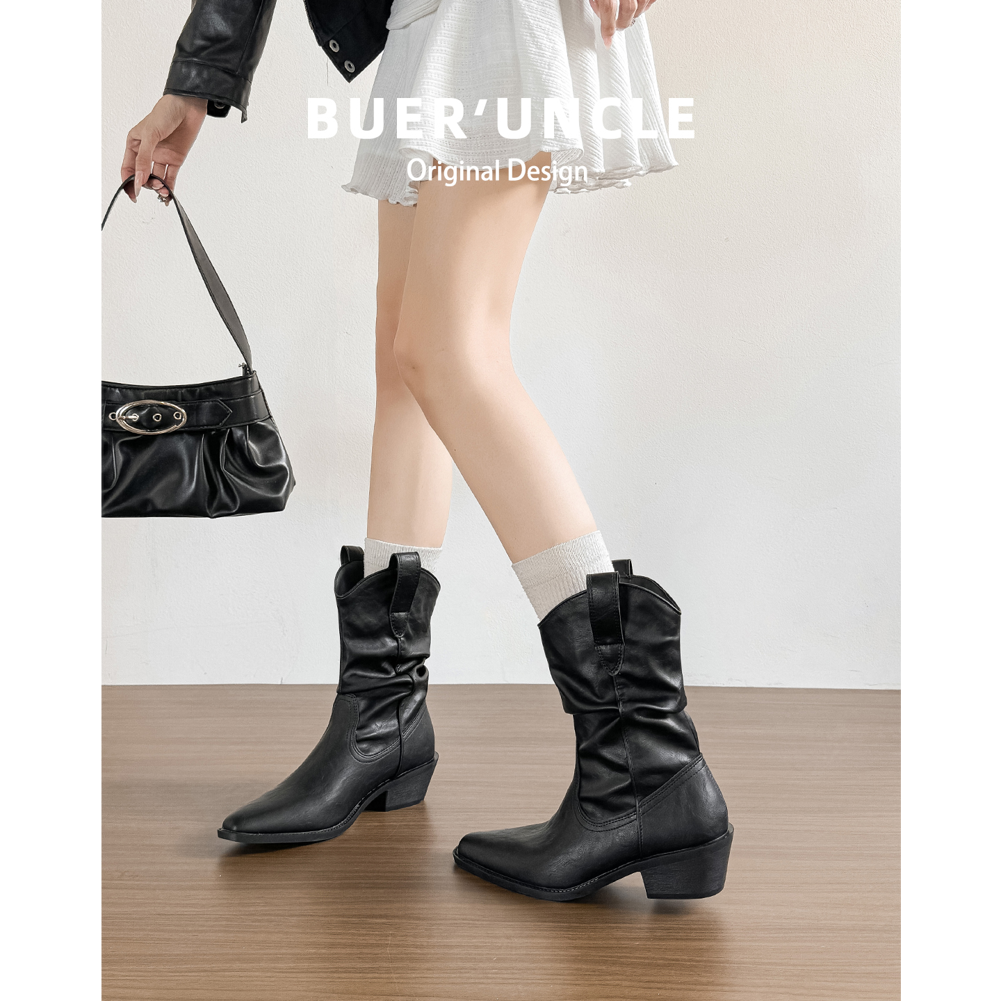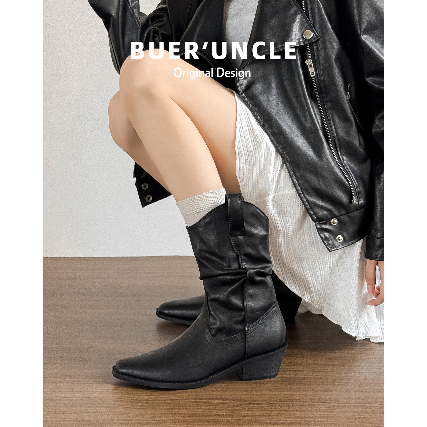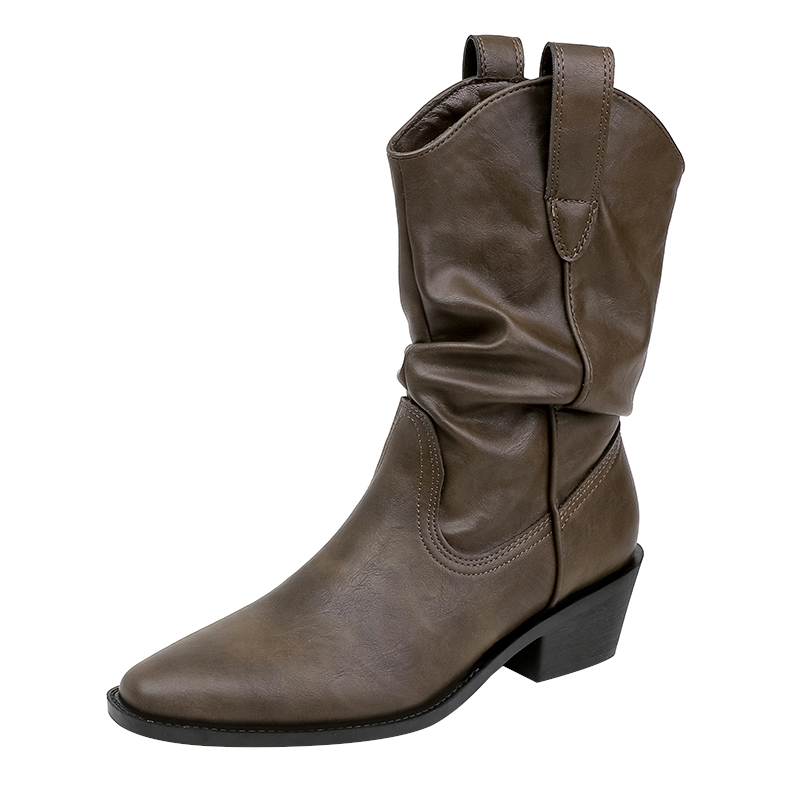 卢昱晓同款 靴子CGY01DS4 TATA他她小熊靴加绒西部靴短靴堆堆靴时装