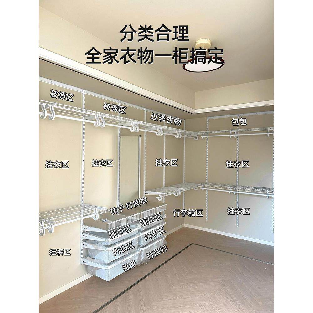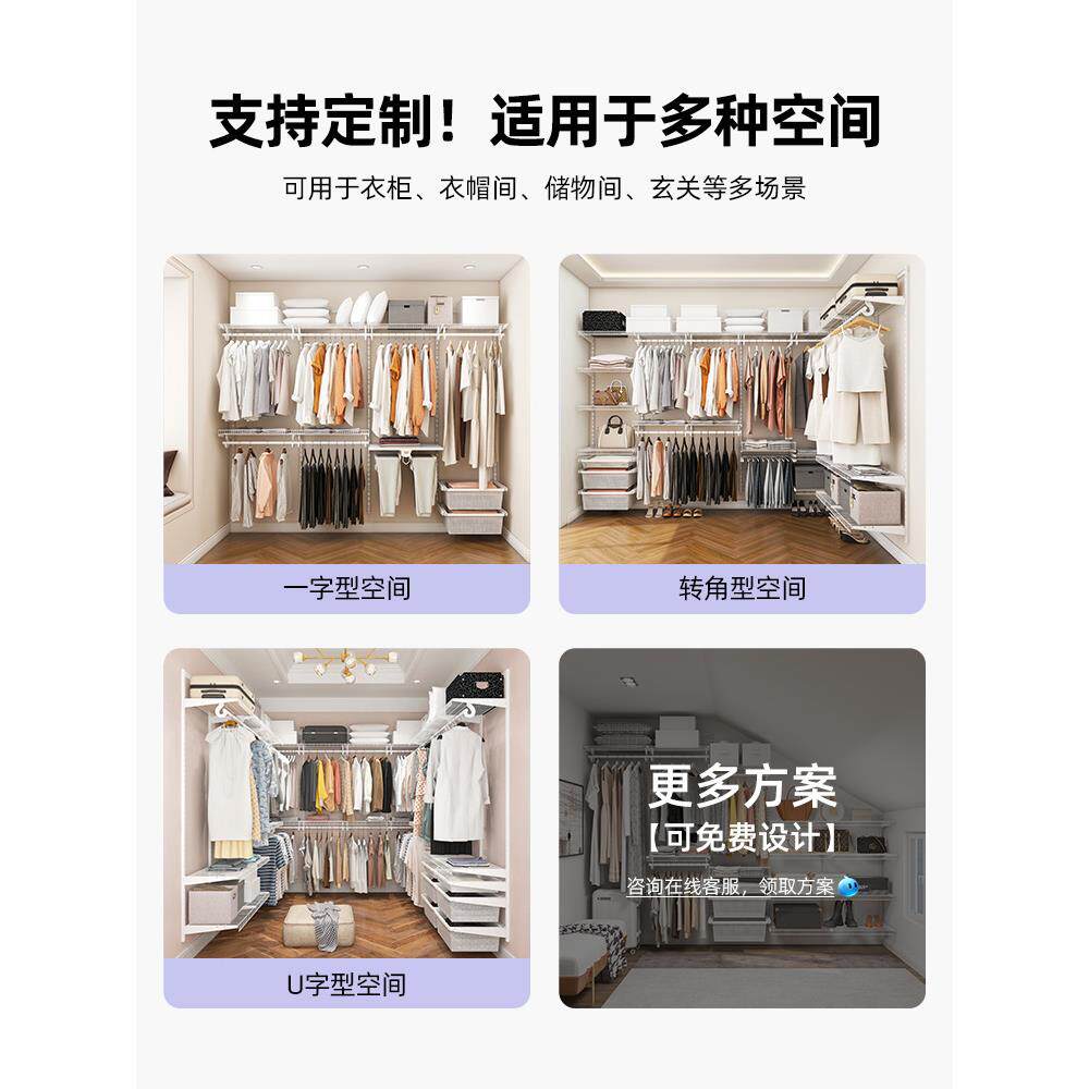 金属衣柜卧室家用挂衣杆开放步入式 壁挂墙定制diy框架衣帽间架子