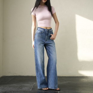 纯棉无弹中高腰遮肉显瘦春秋TH 阔腿裤 W同款 GUS经典 长裤 牛仔裤