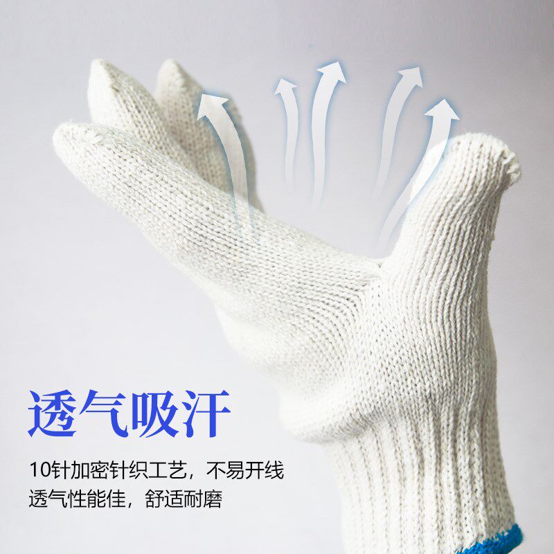 劳保耐磨手套工作防滑劳动薄款 加厚白色棉线尼龙T男工地干活汽修