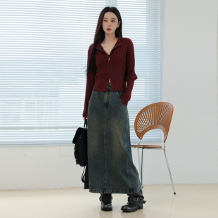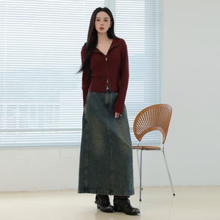 AIRIQI秋季 休闲百搭口袋设计感直筒开叉牛仔半身裙AI43NQ111 新款
