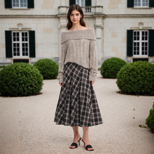 length 毛呢收腰显瘦a字裙大摆半身裙A half hugging skirt waist