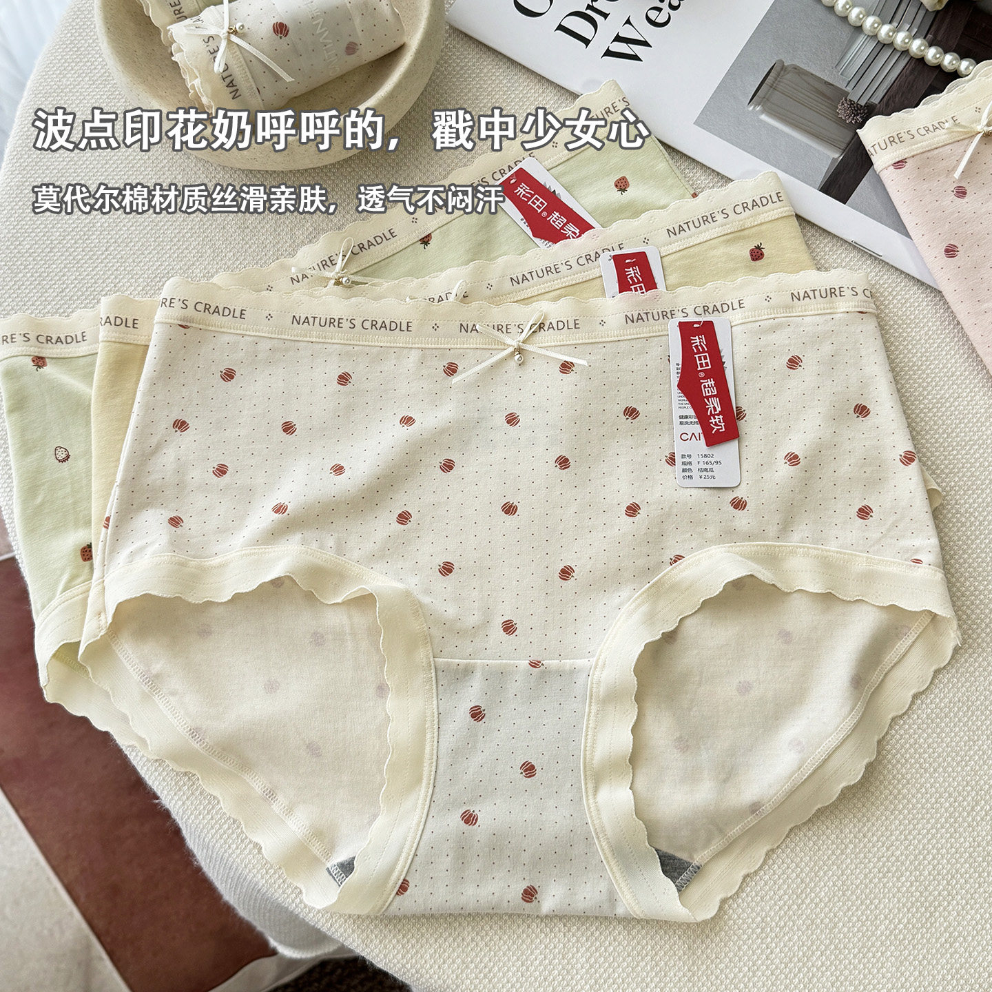 少女蕾丝甜美可爱印花女生三角裤 红豆女士内裤 纯棉全棉裆抗菌短裤