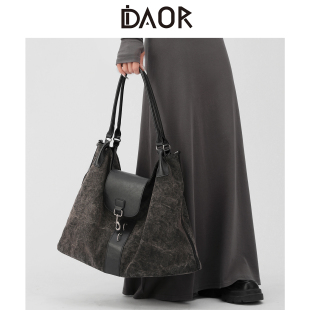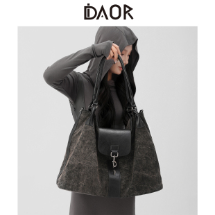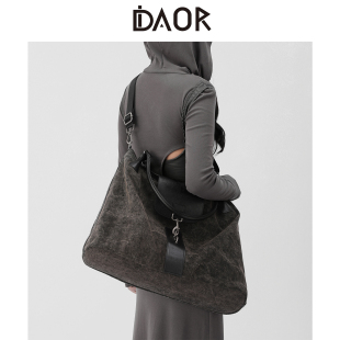 DAOR苔岩褐色做旧帆布托特包包2025新款 通勤单肩包男女手提斜挎包