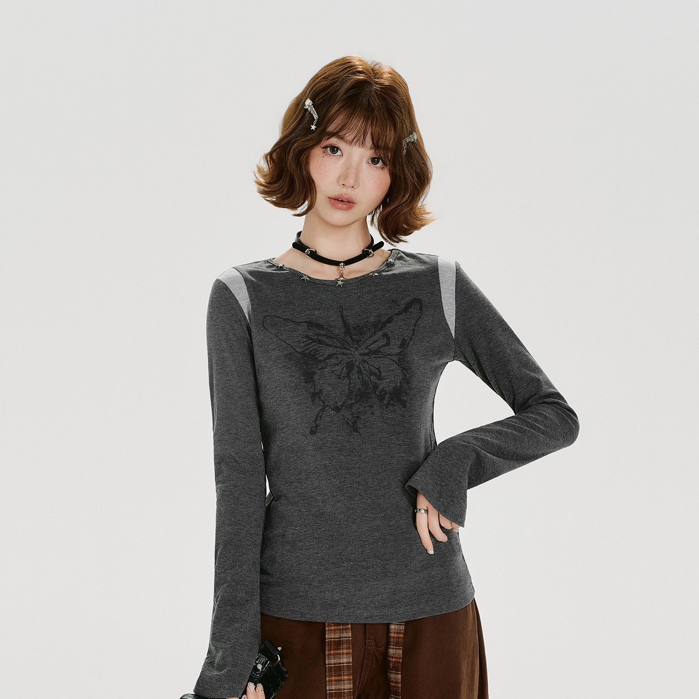 上衣 休闲T恤打底衫 NORYBRAND 户外功能性速干衣结构运动印花长袖