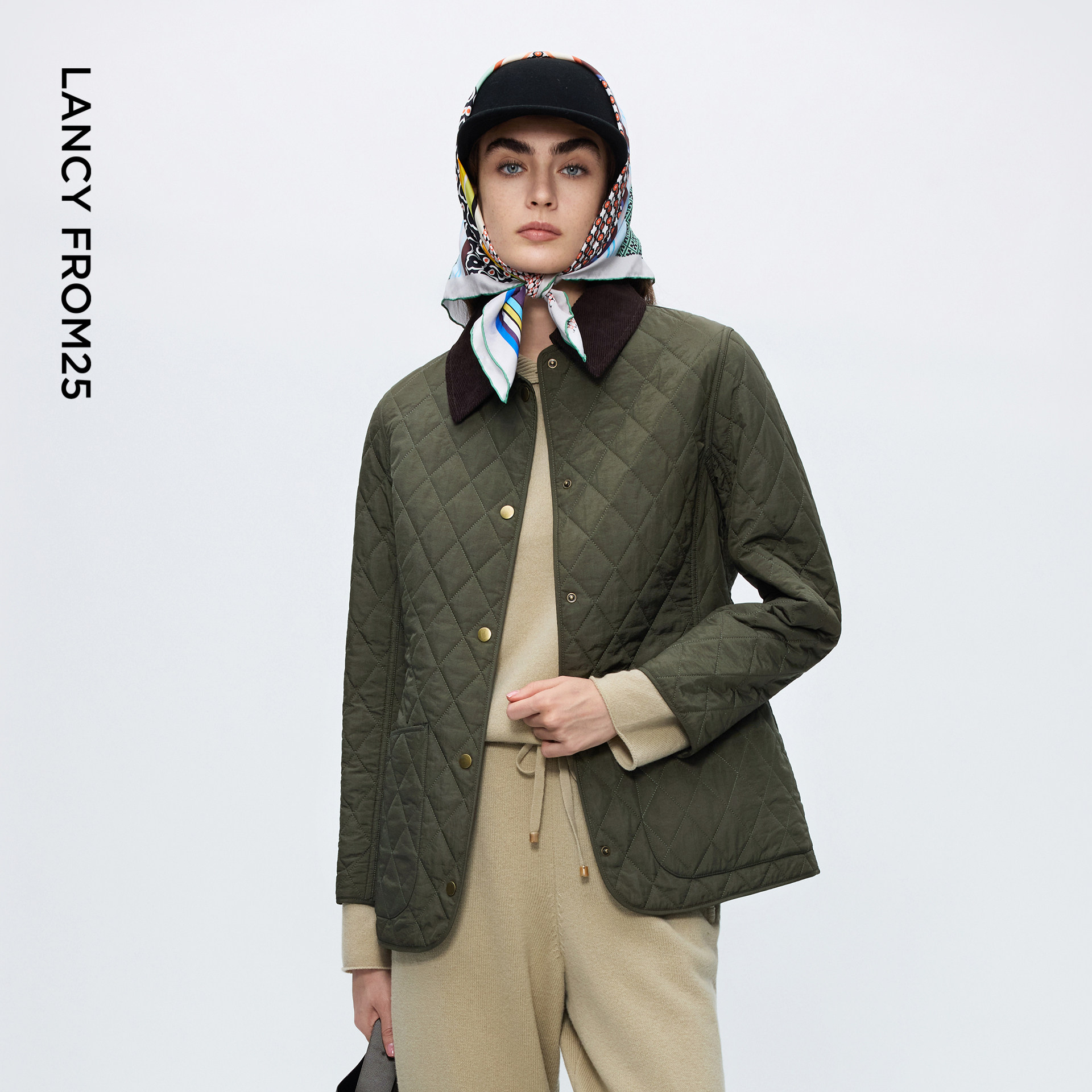 新款 显瘦通勤棉衣2025年冬季 设计感棉服修身 朗姿羊毛撞色翻领时尚
