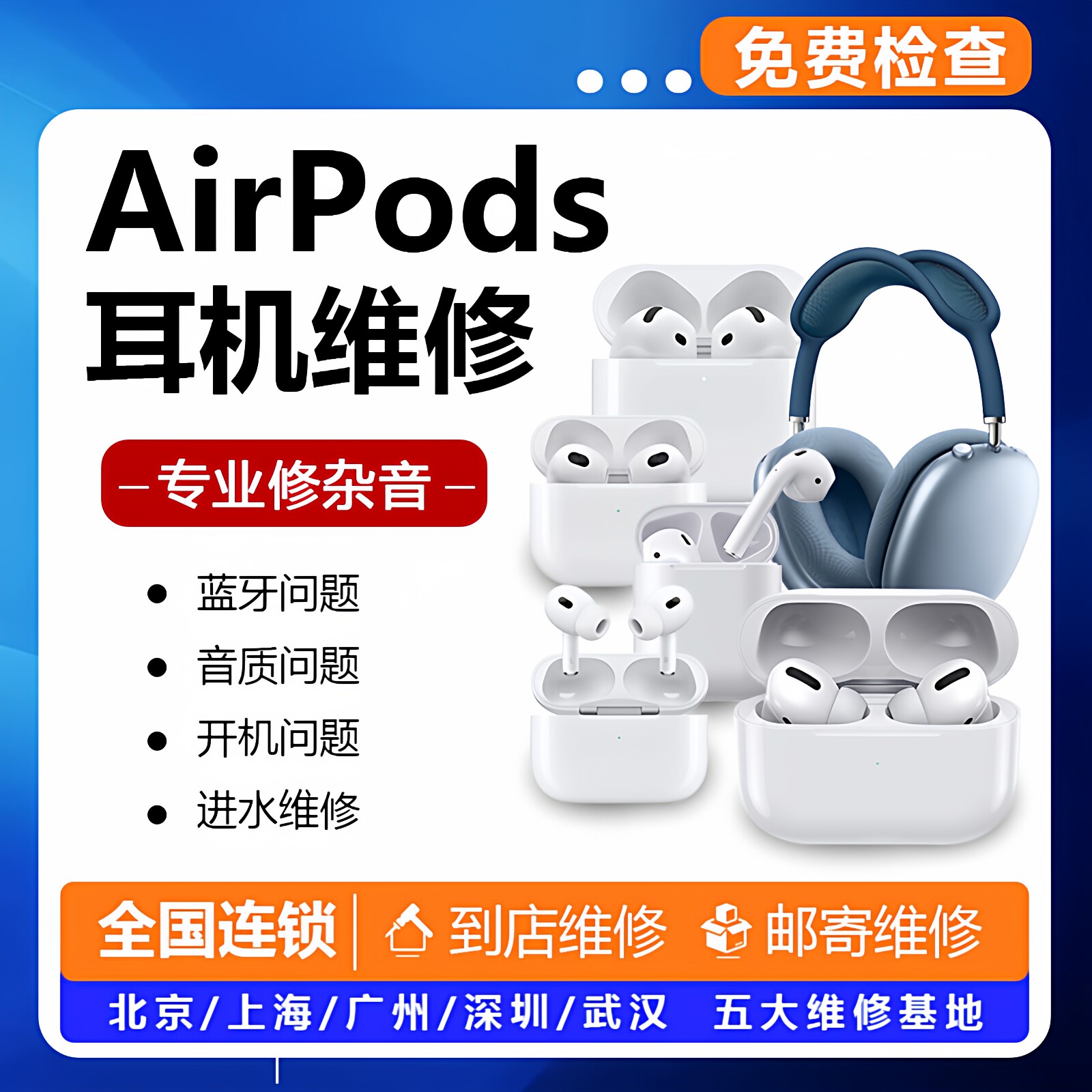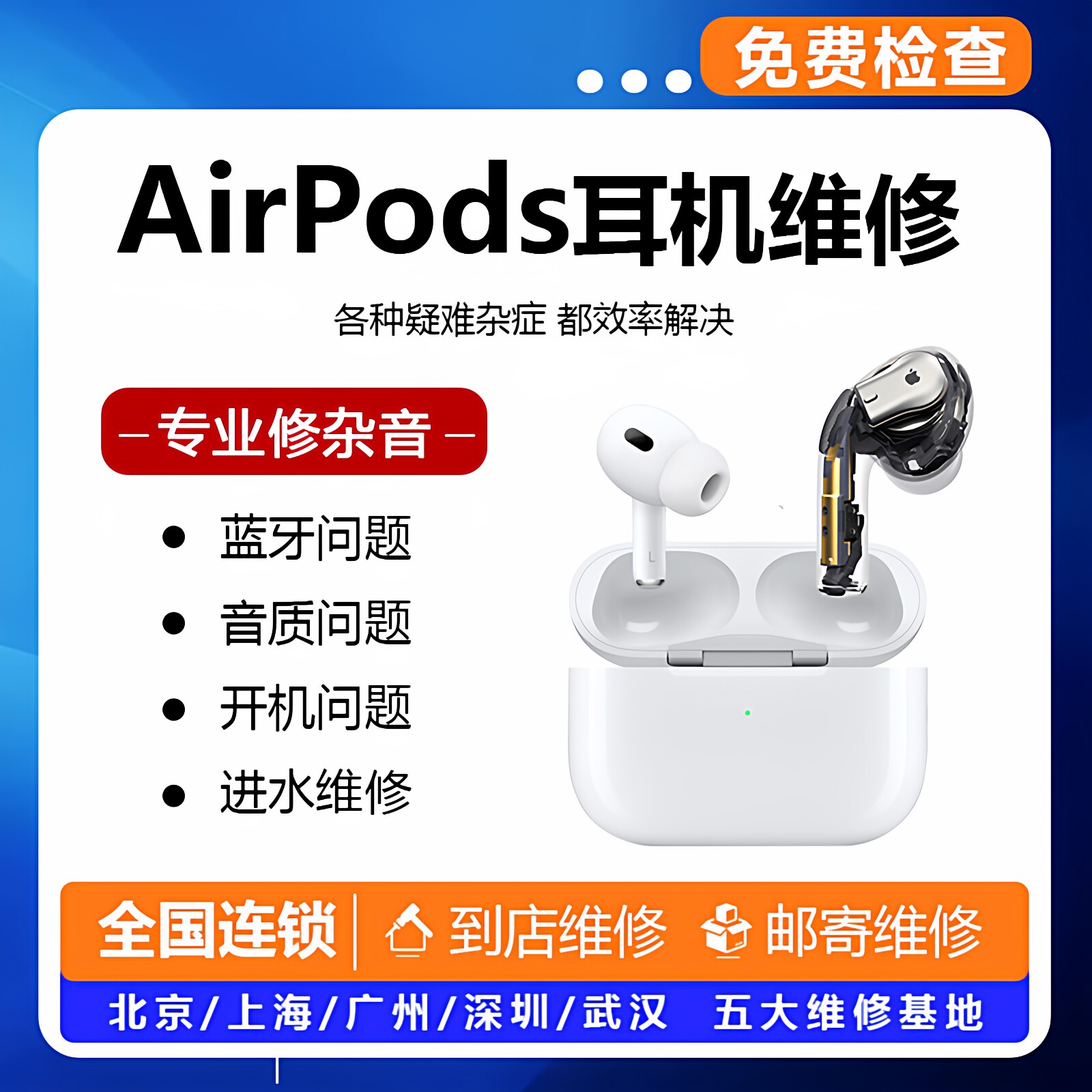 airpodspro维修换电池二代蓝牙修理进水13代修复苹果耳机维修寄修